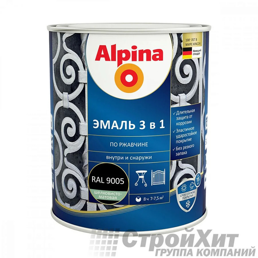 Alpina эмаль алкидно-уретановая по ржавчине 3в1 высокоукрывистая с защитой до 15 лет