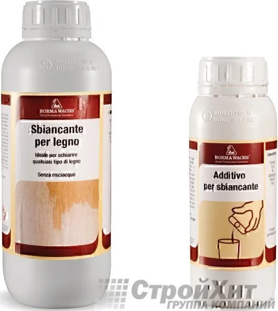 Двухкомпонентный материал, предназначен для отбеливания и выравнивая цвета на всех видах деревянных поверхностей. Не требует ополаскивания и не изменяет структуру древесины. Содержит каустическую соду и перекись водорода.