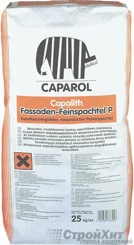 Мешок 25 кг фасадной шпатлевки "Capalith Fassaden-Feinspachtel P" размешать без образования комков в 6-7 л воды и дать настояться 5 мин.