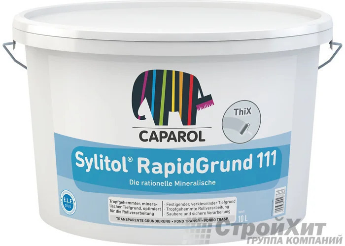 Грунтовка Sylitol RapidGrund 111 превосходно подходит для рационального нанесения валиком. Прозрачная грунтовка для выравнивания прочных минеральных сильно и неравномерно впитывающих подложек. Идеально подходит для обработки таких пористых, впитывающих подложек, как штукатурки, старые диспрерсионно-силикатные краски, кладка из силикатного кирпича, пористый бетон, природный камень, а также бетон, легкий бетон, растворы, для регулирования консистенции дисперсионно-силикатных штукатурок и красок.