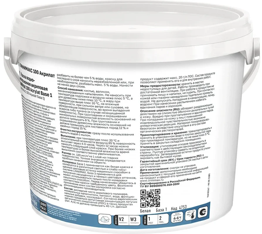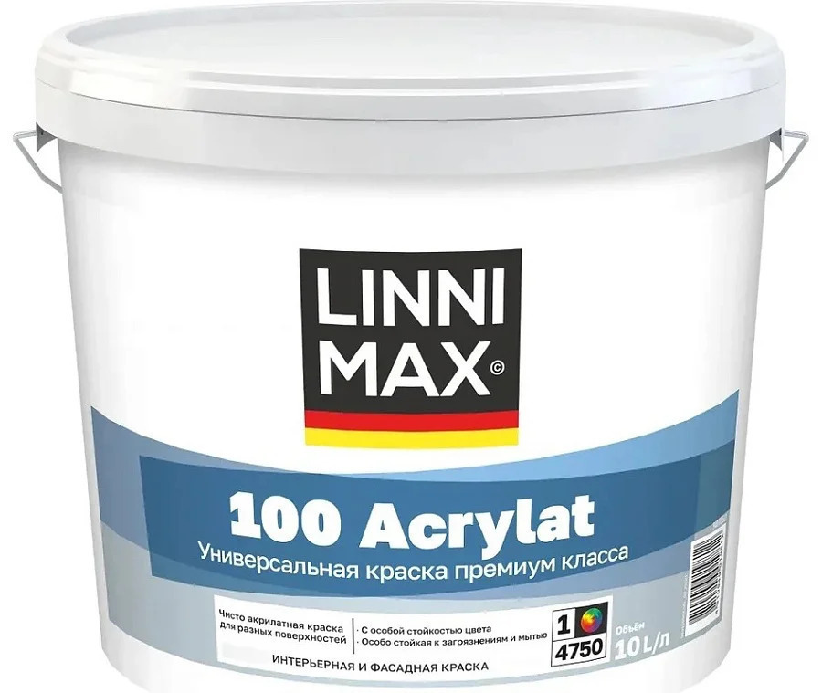 LINNIMAX 100 Acrylat – водно-дисперсионная акриловая краска на основе чистого акрилатного связующего.