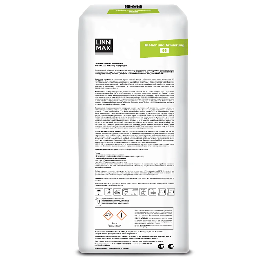 Клеевой состав для монтажа теплоизоляционных плит из минеральной ваты и пенополистирола, а также для устройства армированного базового штукатурного слоя.