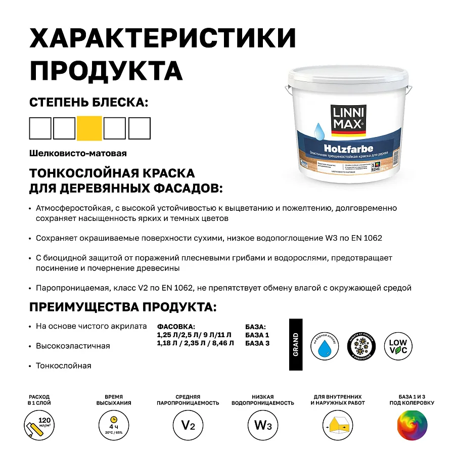 100% акриловая высокоэластичная краска для деревянных фасадов и интерьеров