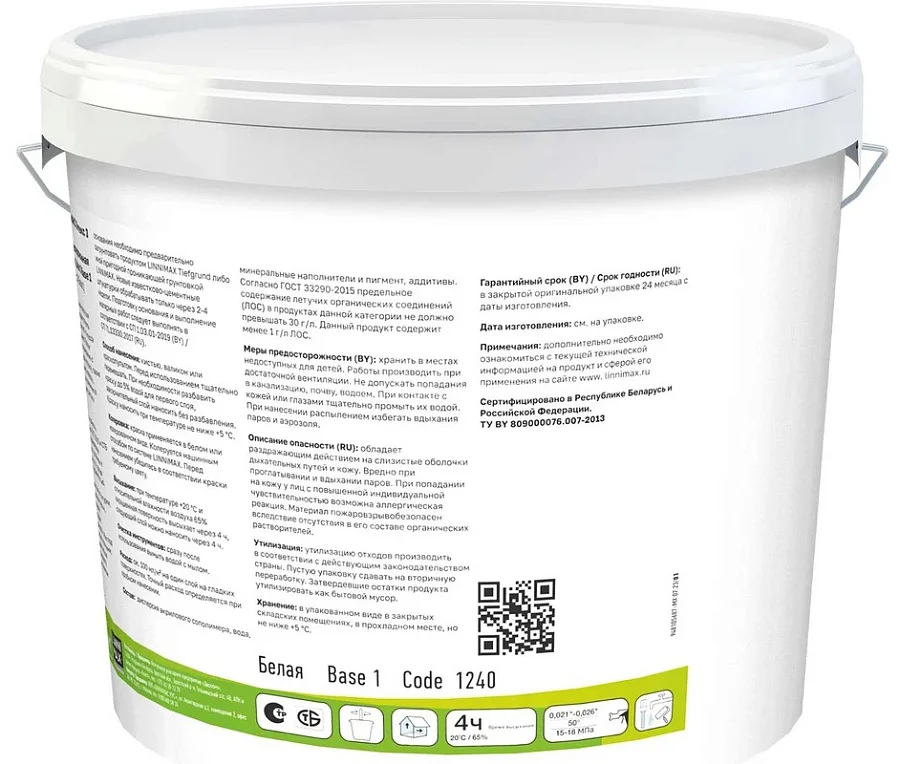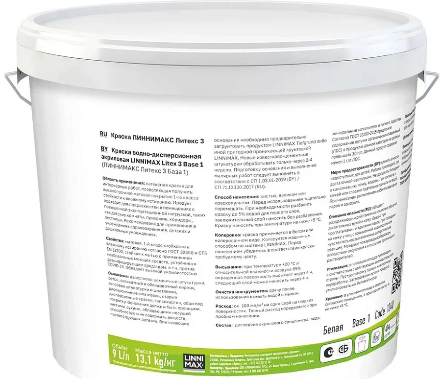 Для внутренних работ. Предназначена для окраски стен и потолков в любых помещениях, в том числе с высокой эксплуатационной нагрузкой и повышенной влажностью.