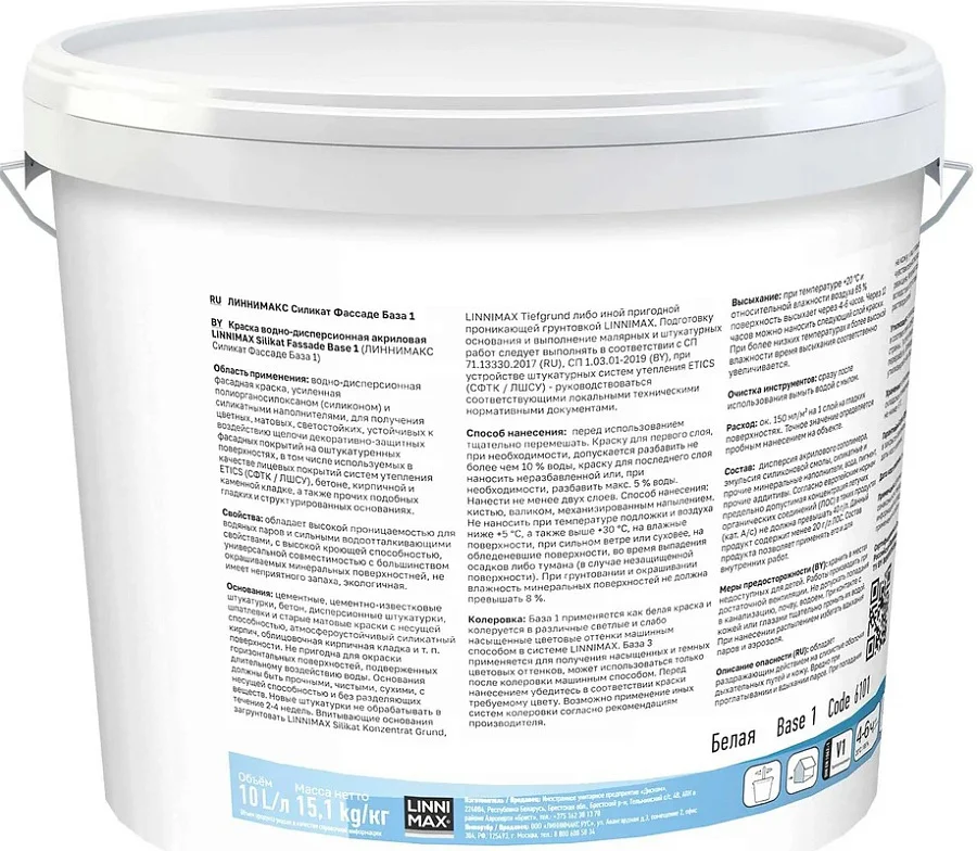 Водно-дисперсионная фасадная краска, усиленная силиконом и силикатными наполнителями.