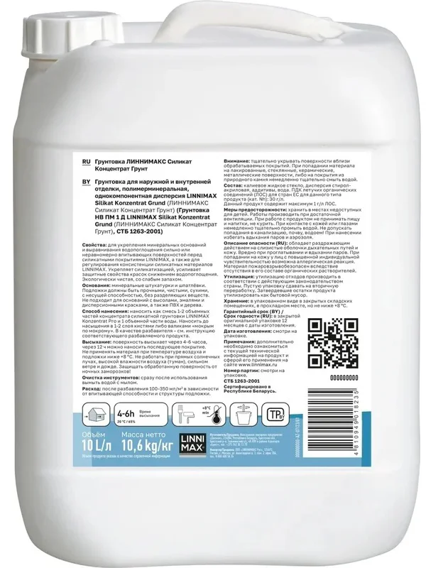Silikat Konzentrat Grund Концентрат силикатной грунтовки для наружных и внутренних работ .