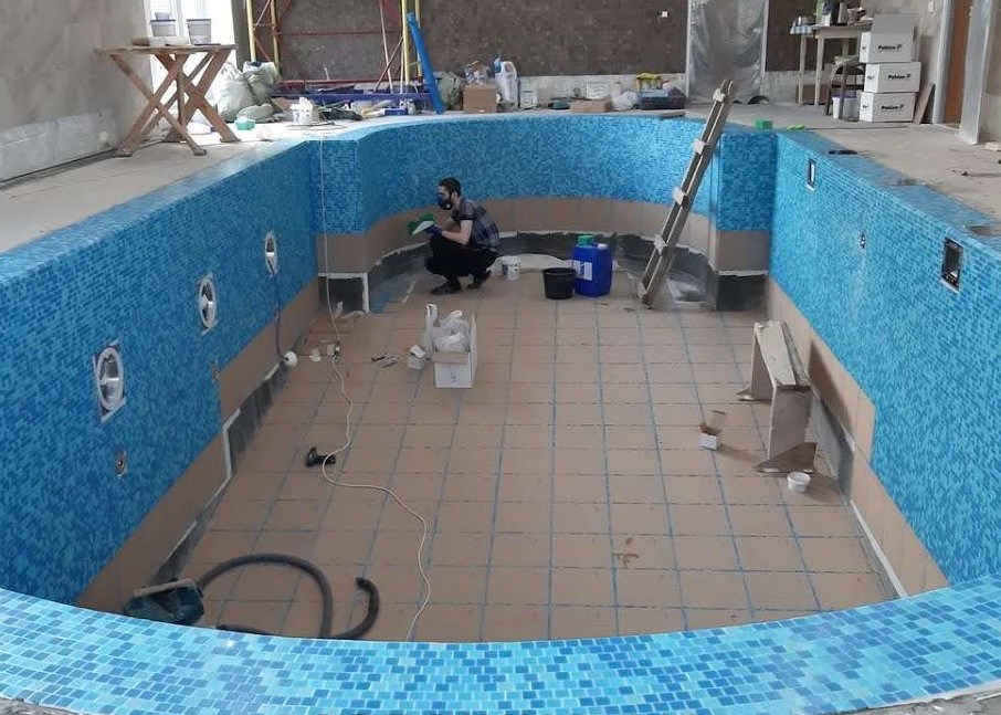 • приклеивание мозаики в бассейнах на стяжки и штукатурки, гидроизолированные составом Mapelastic;