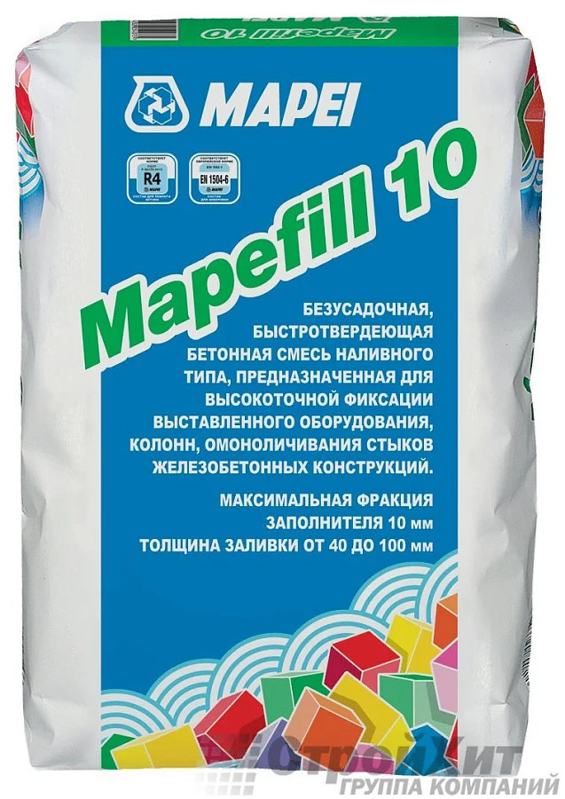 Mapefill 10 готовый к применению материал в виде сухой бетонной смеси, созданный на основе высокопрочного цемента, фракционированного песка и гравия, и специальной добавки с расширяющимся реагентом. При смешивании с водой образует высокотекучую, не расслаивающуюся бетонную смесь.