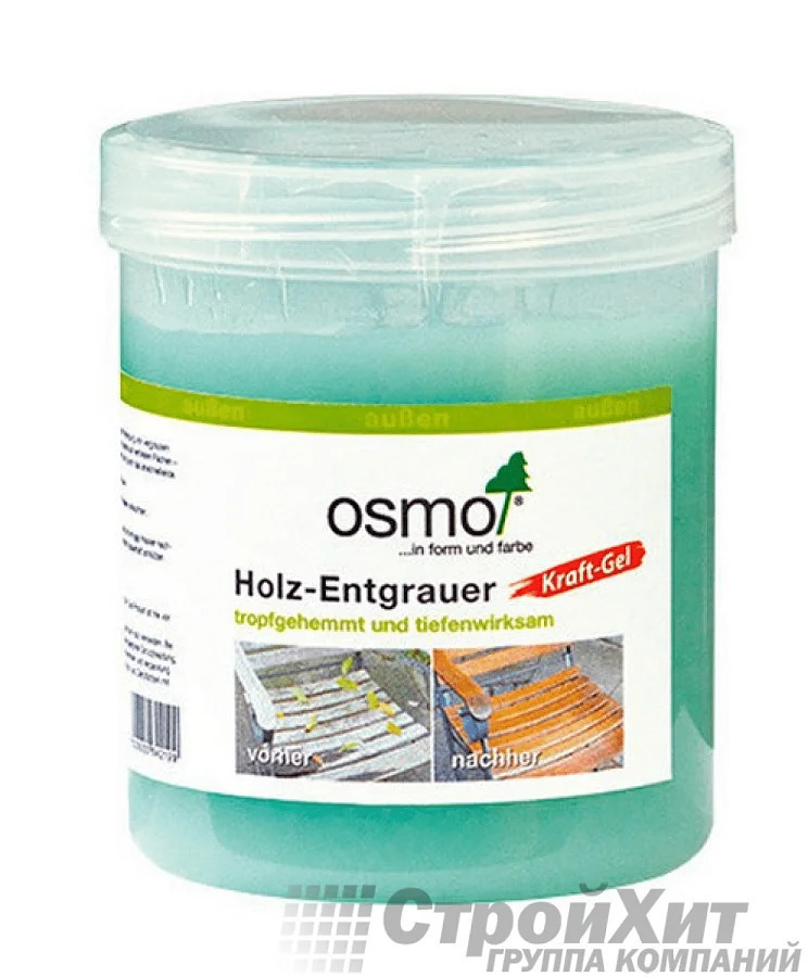 Средство для удаления серого слоя древесины Holz-Entgrauer Kraft-Gel – густое гелеобразное моющее средство для очистки и обновления посеревшей древесины на улице. Продукт обладает большой вязкостью, так что легко может быть нанесен в том числе и на вертикальные поверхности. Благодаря глубокому проникновению в древесину эффективно удаляет серый налет. После дополнительной обработки Osmo-маслами древесина полностью восстанавливает свой натуральный цвет.