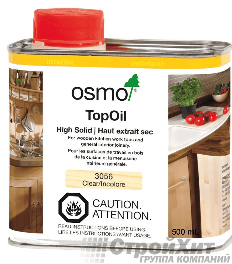 Osmo-масло с твердым воском TopOil - специальная комбинация масел и восков для бесцветной обработки кухонных столешниц, рабочих поверхностей из массива древесины и мебельных щитов.