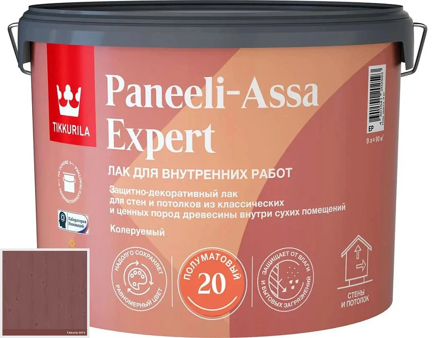 5075 Лак Tikkurila Tikkivala Paneeli Assa Expert 20 полуматовый интерьерный лак 9 л