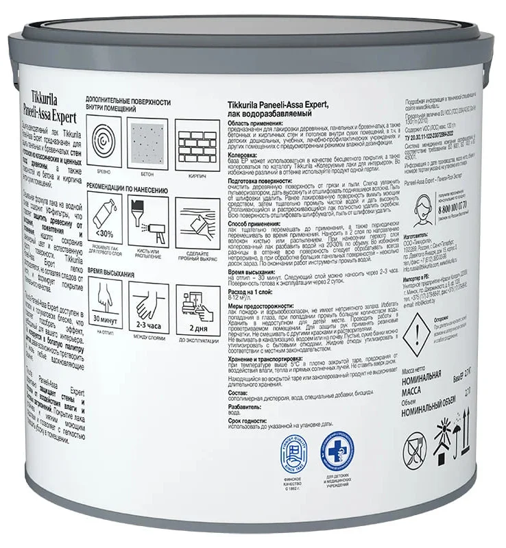 Лак Tikkurila Paneeli Assa Expert 20 полуматовый интерьерный лак 9 л