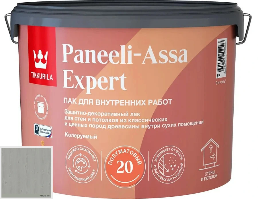 5081 Лак Tikkurila Tikkivala Paneeli Assa Expert 20 полуматовый интерьерный лак 9 л