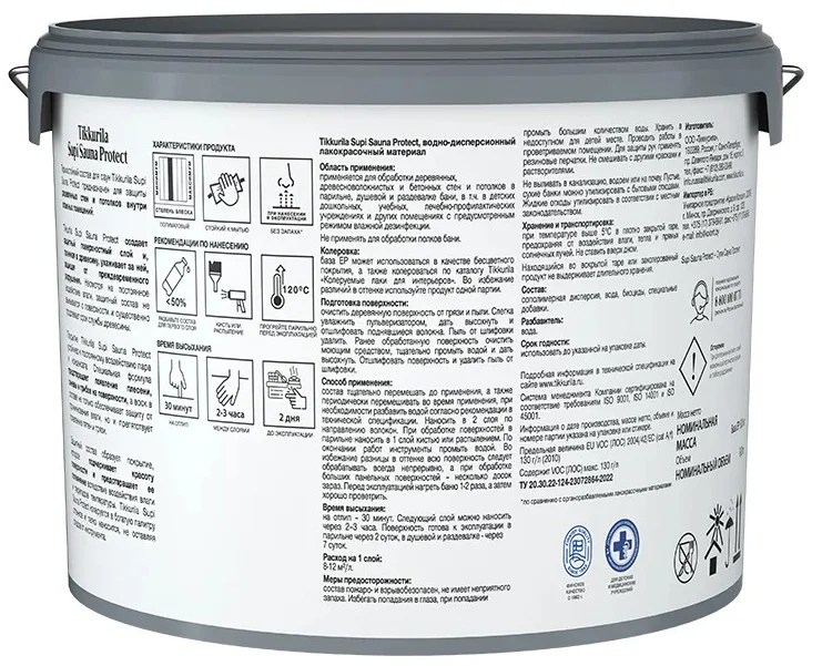 Состав тщательно перемешать перед применением, а также периодически перемешивать во время работ. Наносить тонкими слоями. Обработка стен парилен: Нанести колерованный или бесцветный состав Tikkurila Supi Saunasuoja одним слоем или двумя слоями разбавленного на 50% водой, таким образом, следы от кисти будут менее заметными. Обработка стен душевых и раздевалок: Наносить состав Tikkurila Supi Saunasuoja двумя слоями. При нанесении первого слоя колерованный состав разбавить водой до 20%, бесцветный состав – при необходимости. При использовании колерованного состава Tikkurila Supi Saunasuoja для проверки оттенка рекомендуется сделать пробную выкраску на отдельной доске. При разбавлении цвет более светлый и более прозрачный по сравнению с цветом каталога. Окончательный цвет покрытия зависит от породы и предыдущих обработок. Во избежание разницы в оттенке всю поверхность следует обрабатывать всегда непрерывно, а при обработке больших панельных поверхностей – несколько досок зараз. Обеспечить хорошую вентиляцию во время нанесения и высыхания материала. Перед эксплуатацией нагреть баню 1-2 раза до температуры 120ºС, а затем хорошо проветрить