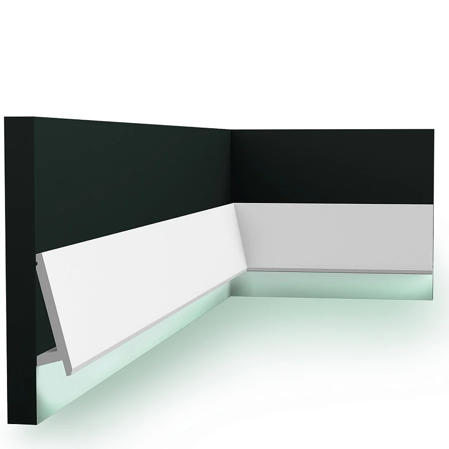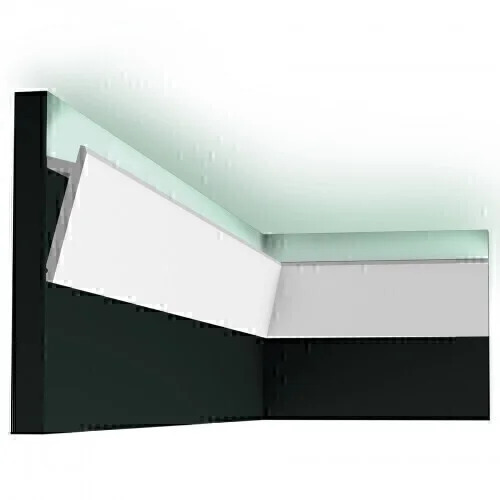 Современный и строгий осветительный профиль, который можно устанавливать как аплайтер и даунлайтер. Примечания: Используйте DecoFix Power. Используйте алюминиевую ленту на внутренней стороне профиля или алюминиевый профиль для светодиодов, чтобы свет не просвечивал сквозь молдинг.