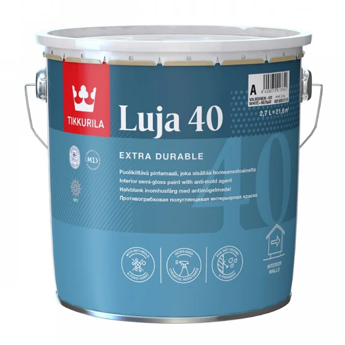 Полуматовая моющаяся краска для стен в сухих и влажных помещениях