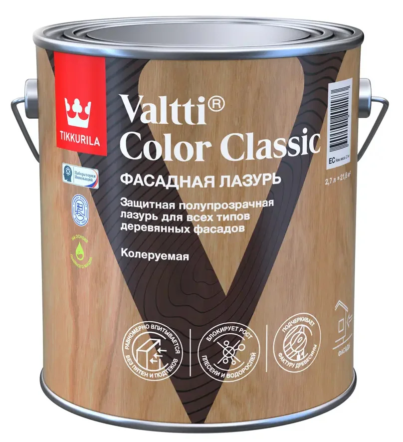 Влагостойкая защитная лазурь для древесины, 10 готовых цветов и ещё в 50 цветов можно заколеровать.