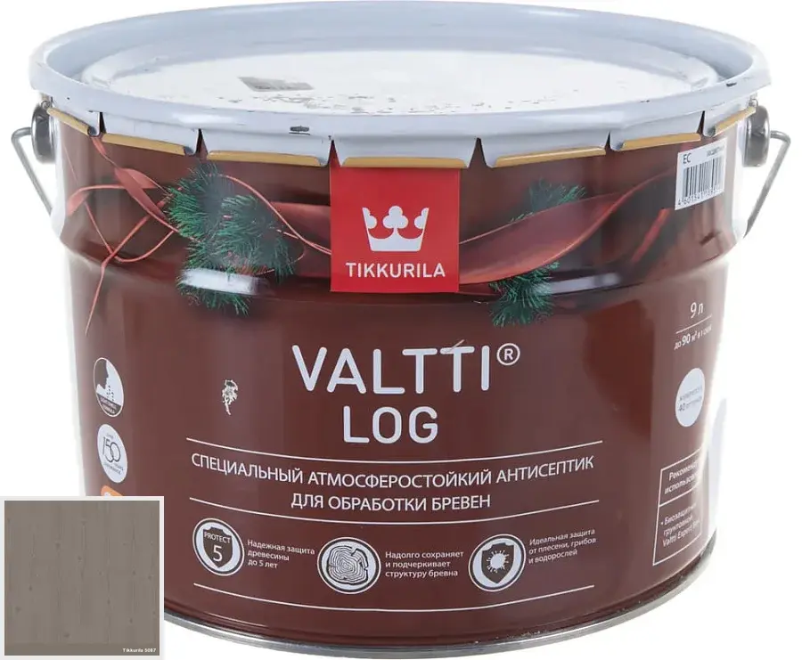 Кроющий антисептик для древесины, цвета Айсберг, Фьорд, Северное море, Альпийское утро, Топленое молоко, Имбирь, Карамель, Лакрица и колеруется в любые другие цвета.